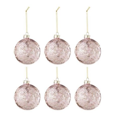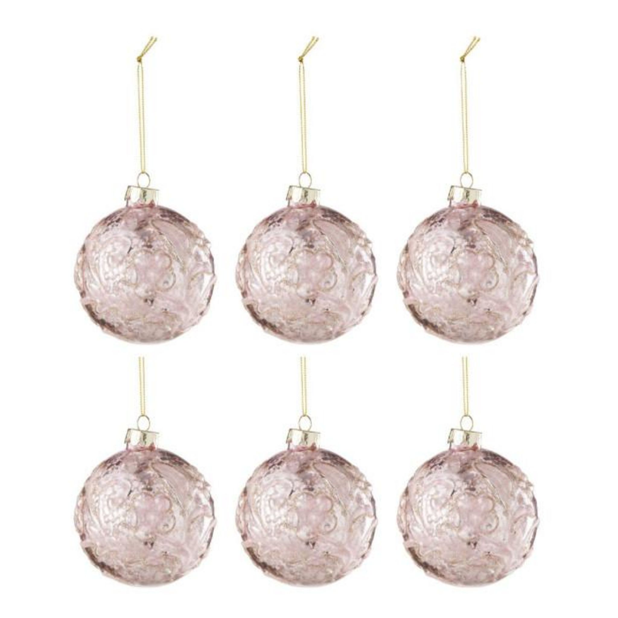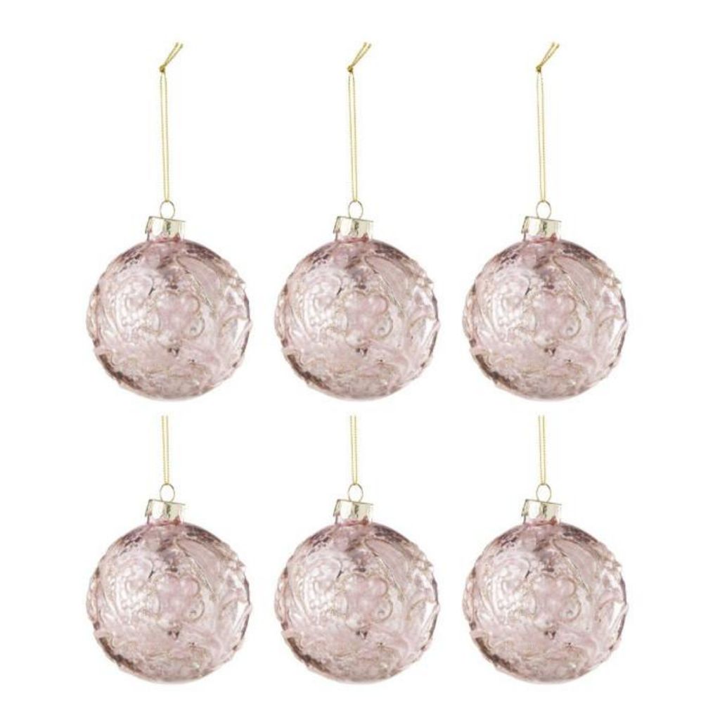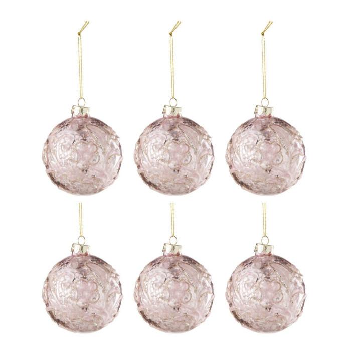 Lot de 6 Boules de Noël Rosie 8cm Rose
