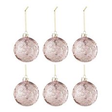 Informations Techniques : Dimensions : D. 8 x H. 8 cm Matière : 100% Verre Spécificités : Élégant & Festif Lot de 6 boules de Noël À suspendre Motifs roses Avec paillettes Forme ronde Poids : 0,02 kg Couleur : Rose
