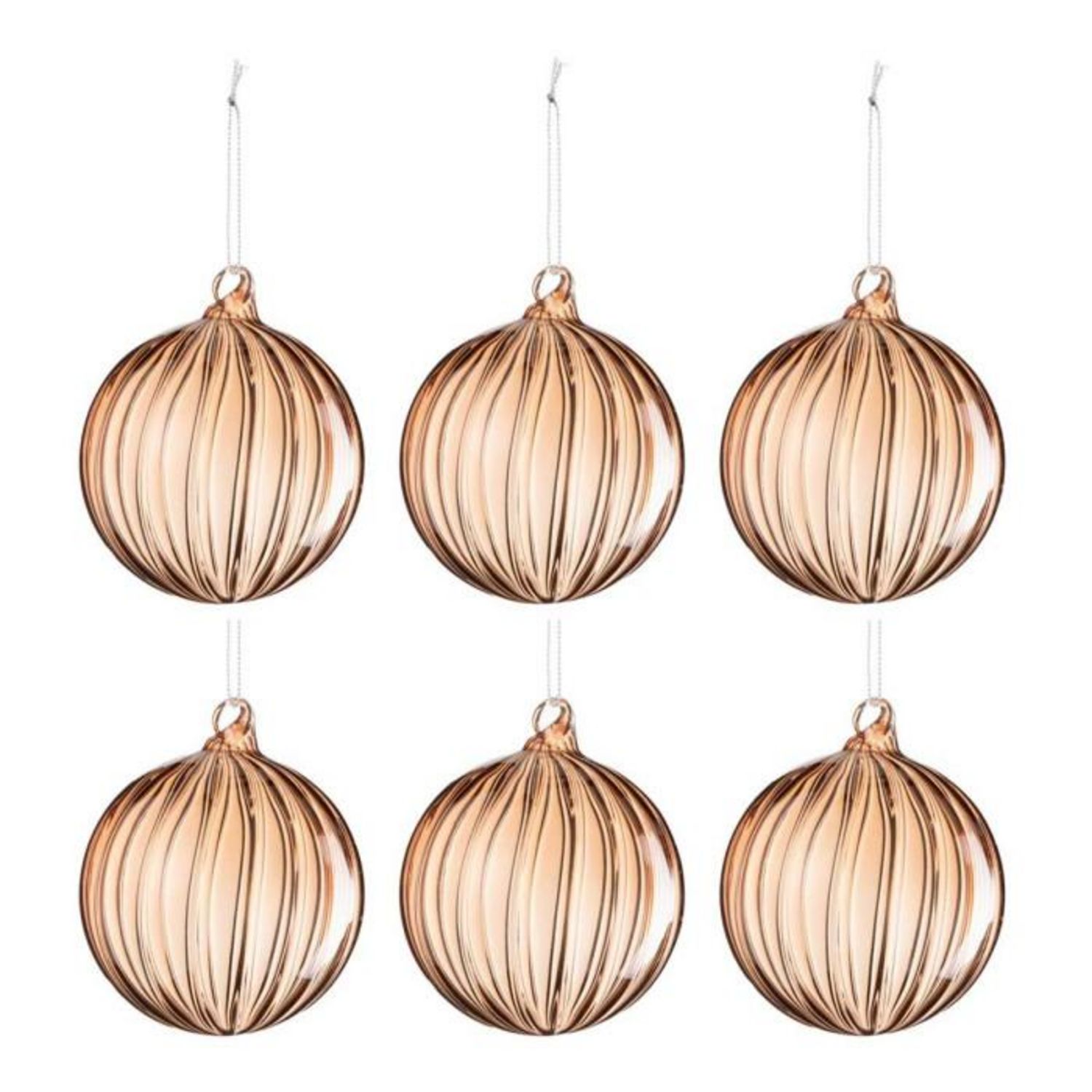 Lot de 6 Boules de Noël Strie 8cm Marron Clair