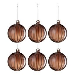 Lot de 6 Boules de Noël  Strie  8cm Marron Foncé