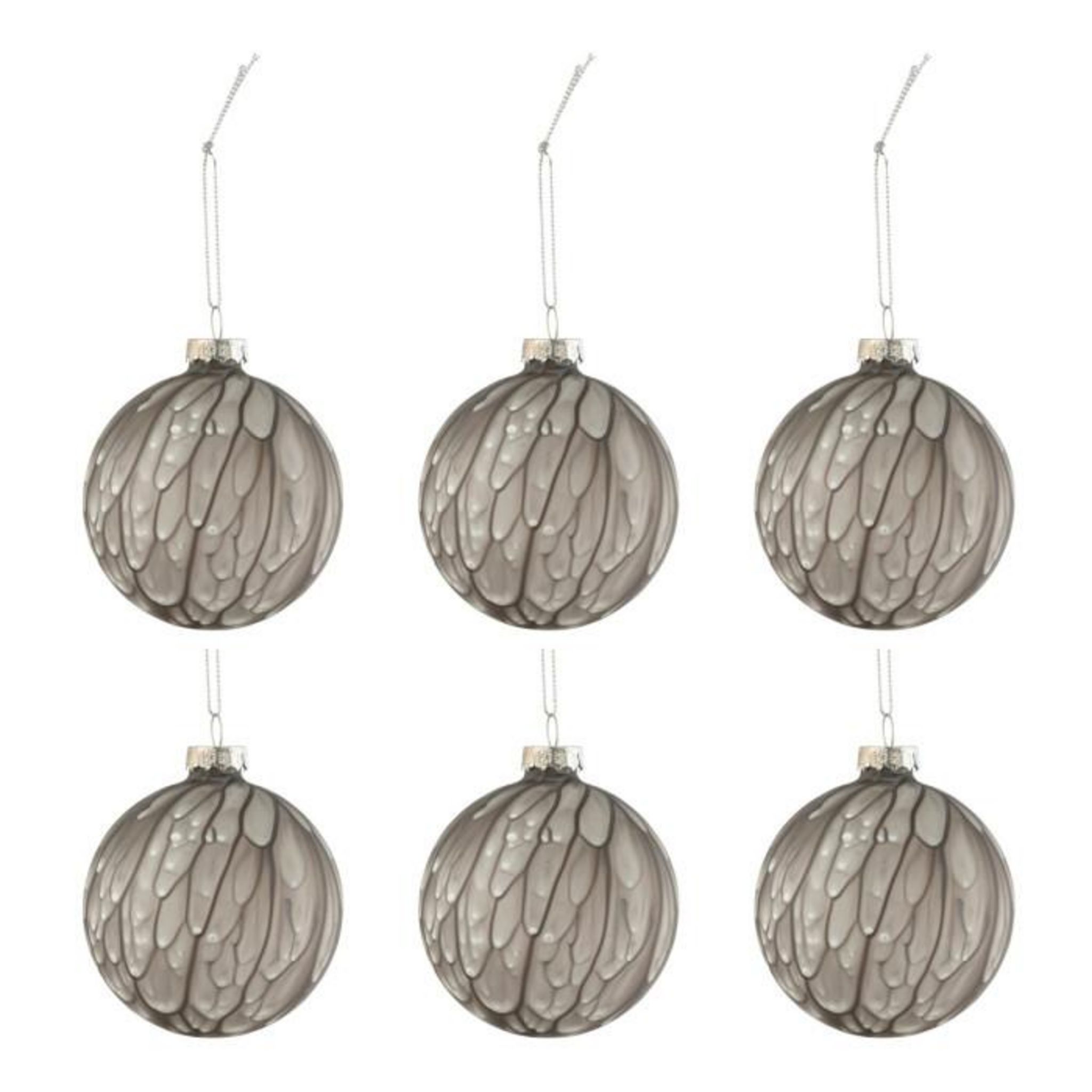 Lot de 6 Boules de Noël Tâche Mat 8cm Gris