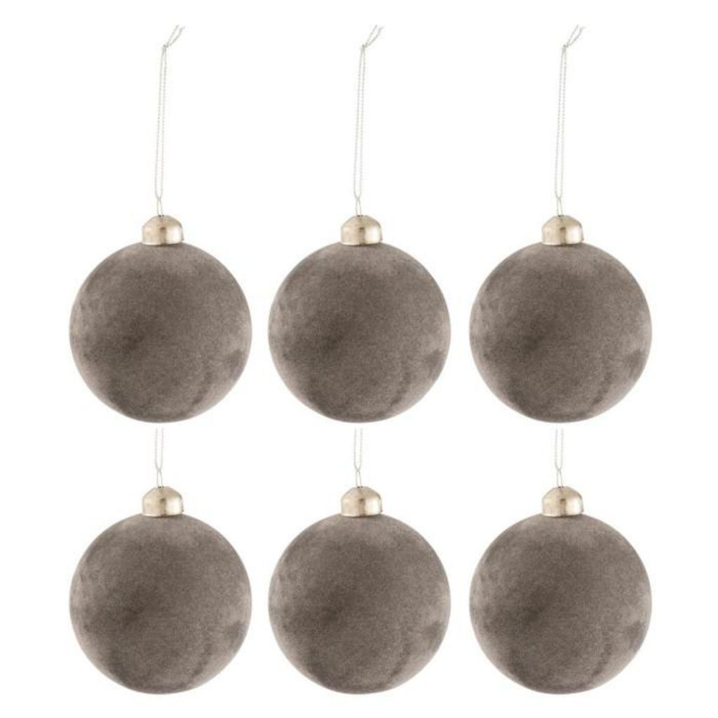 Lot de 6 Boules de Noël Velours 8cm Gris