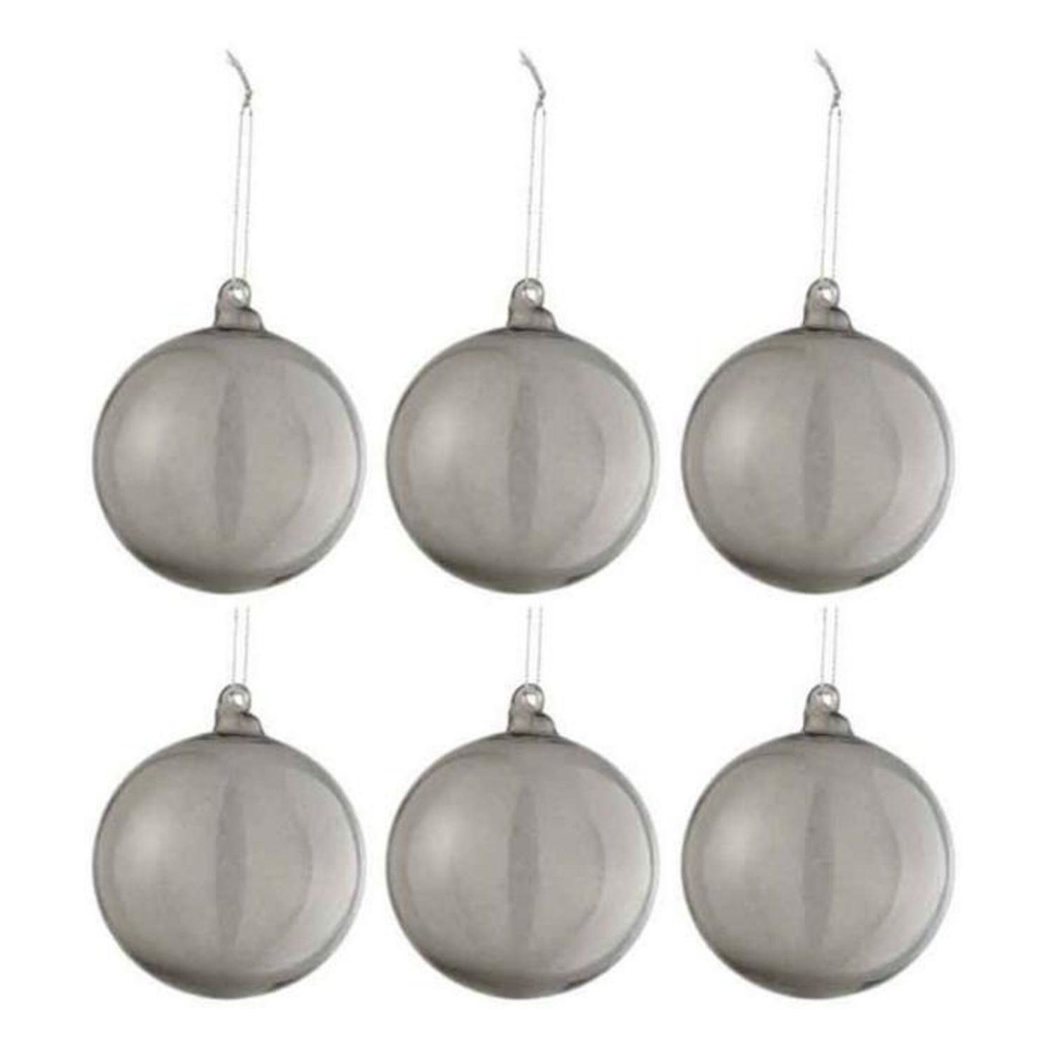 Lot de 6 Boules de Noël Verre Épais 8cm Gris
