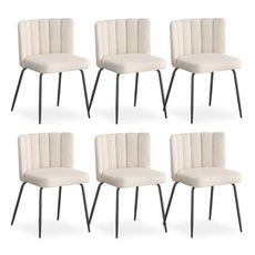 Informations Techniques : Dimensions : L. 53 x l. 53 x H. 79 cm Assise : H. 47cm Matières : Revêtement : Tissu Piètement : Métal Spécificités : Pratique & Confortable Lot de 6 chaises Design coquillage Tissu bouclette Pieds en métal noir Dossier et assise matelassés Capacité de charge maximale : 1