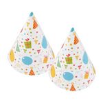 Informations Techniques : Dimensions : D. 10,5 x H. 16,7 cm Matière : Papier Spécificités : Déco & Tendance Lot de 6 Chapeaux de Fête Forme Ronde Motif Imprimé Couleur : Blanc