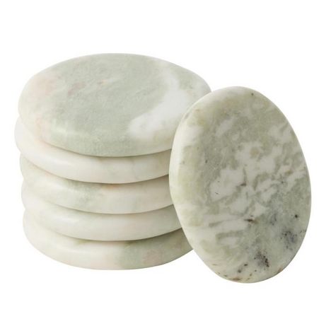 Informations Techniques : Dimensions : D. 10 x H. 1,5 cm Matière : 100% Marbre Spécificités : Pratique & Utile Lot de 6 dessous de verre Forme ronde Poids : 1,76 kg Couleur : Blanc & Vert