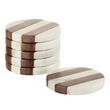 Informations Techniques : Dimensions : D. 10 x H. 1,5 cm Matière : Marbre Spécificités : Pratique & Utile Lot de 6 Dessous de Verre Rayures Marron & Blanches Forme Ronde Poids : 1,90 kg Couleur : Blanc & Marron