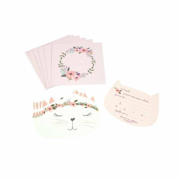 Lot de 6 Invitations d'Anniversaire Boho Chat 14cm Rose