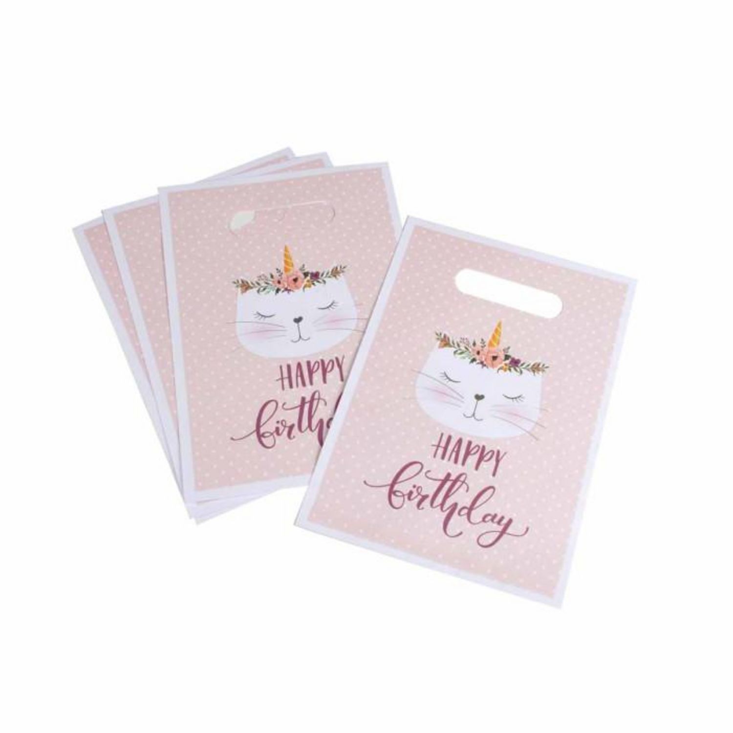 Lot de 6 Sacs à Bonbons Boho Chat 23cm Rose