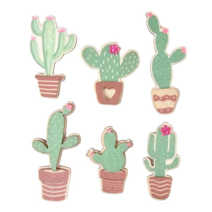 Lot de 6 Stickers en Bois Cactus 5cm Vert