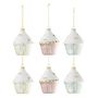 Informations Techniques : Dimensions : D. 7,5 x H. 10 cm Matière : 100% Verre Spécificités : Déco & Original Lot de 6 sujets de Noël À suspendre Design cake Poids : 0,02 kg Couleur : Multicolore