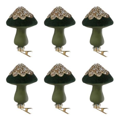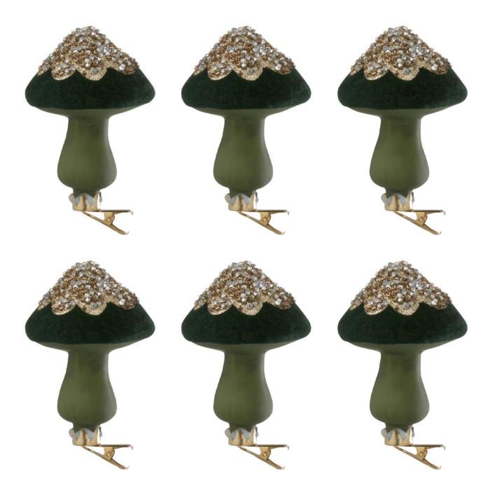 Lot de 6 Sujets de Noël Champignon 10cm Vert