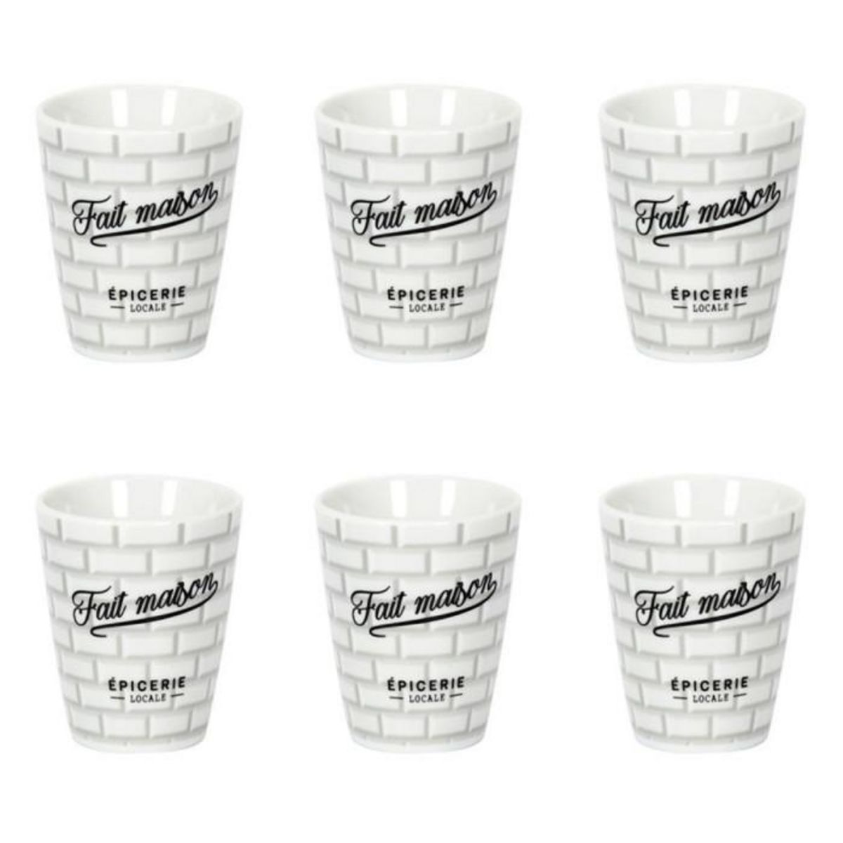 Informations Techniques : Dimensions : L. 7 x l. 6 cm Matière : Céramique Spécificités : Pratique & Utile Lot de 6 Tasses à Café Forme Ronde Contenance : 7 cl Poids : 0,087 kg Couleur : Blanc & Noir
