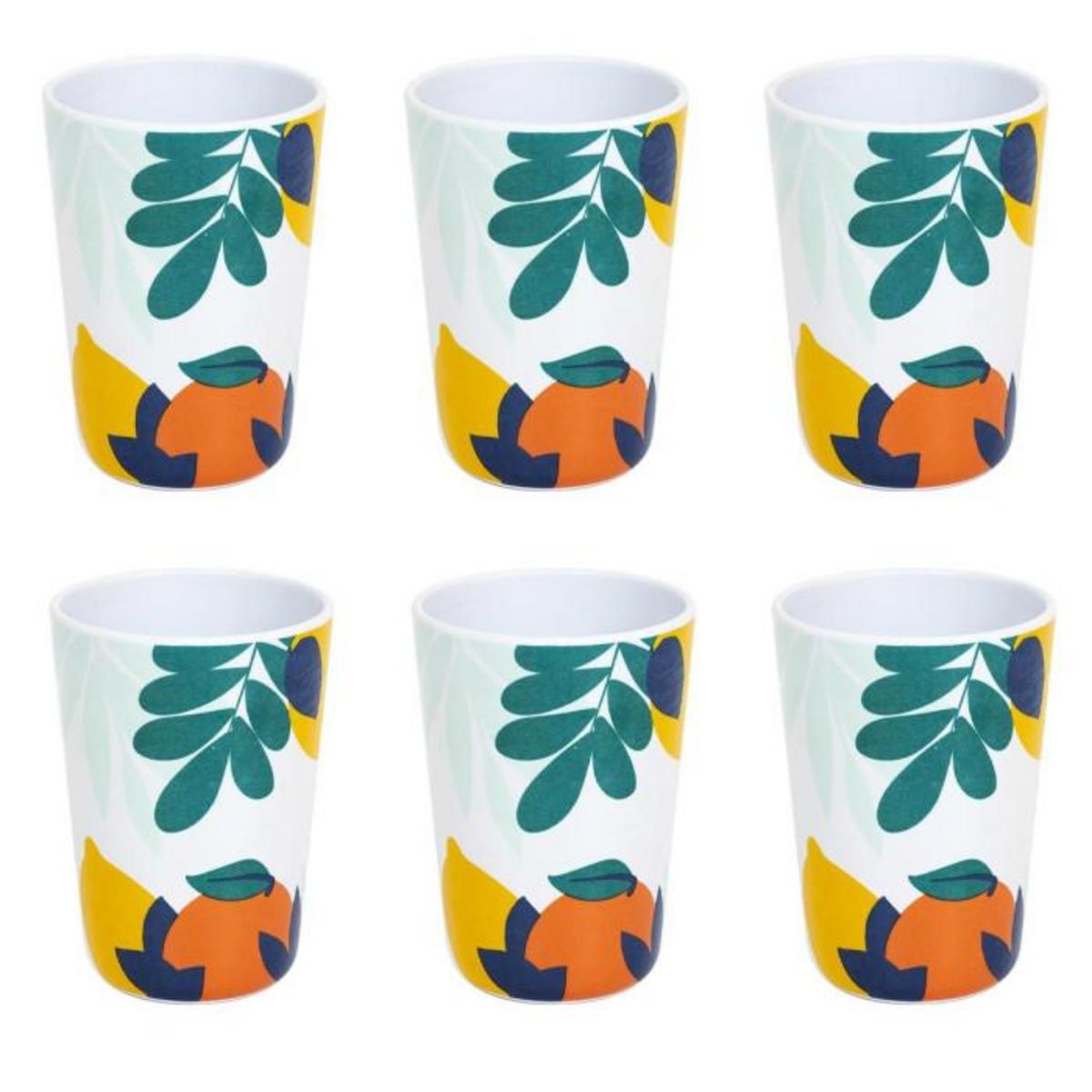 Informations Techniques : Dimensions : L. 10 x l. 7,1 cm Matière : Plastique & Mélaminé Spécificités : Pratique & Utile Lot de 6 Tasses à Café Forme Ronde A Motifs Contenance : 20 cl Poids : 0,084 kg Couleur : Multicolore