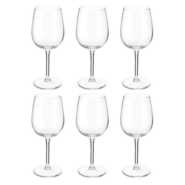 Informations Techniques : Dimensions : D. 7,4 x H. 20,3 cm Matière : Verre Spécificités : Pratique & Utile Lot de 6 Verres à Vin Forme Ronde Passage au Lave-Vaisselle & au Micro-Ondes Contenance : 36 cl Poids : 0,15 kg Couleur : Transparent