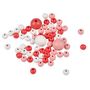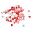 Lot de 63 Perles Rondes Bois 1-2cm Corail & Blanc