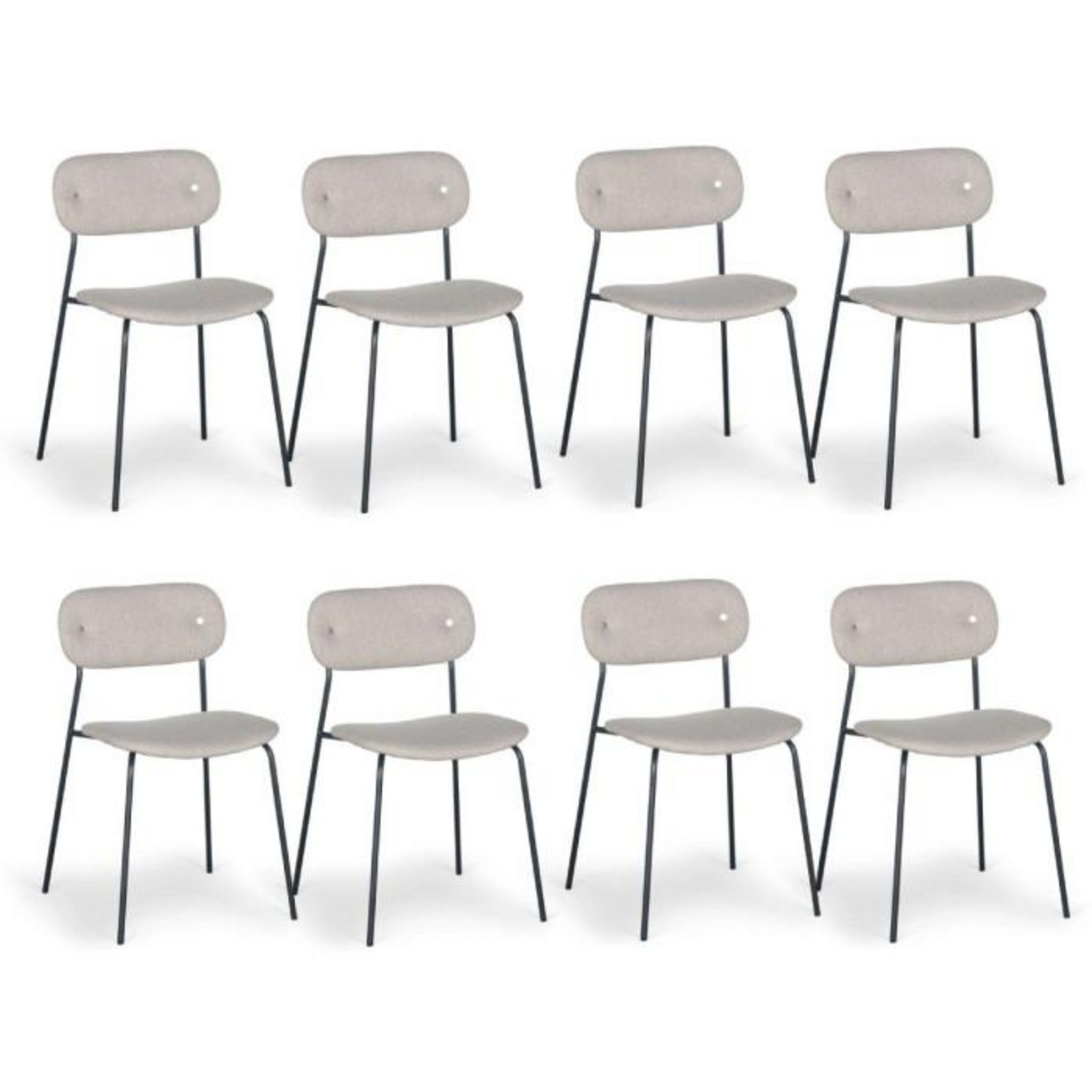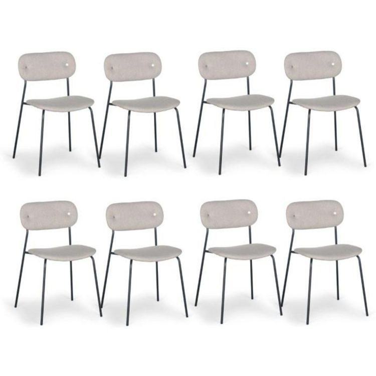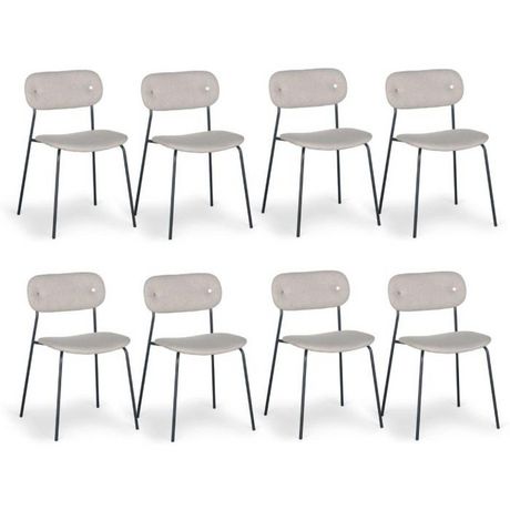 Informations Techniques : Dimensions : L. 47,5 x l. 49,5 x H. 80 cm Matières : Revêtement : Tissu Structure et piétement : Métal Spécificités : Tendance & Moderne Lot de 8 chaises design Assise et dossier matelassés Poids : 38 kg Couleur : Beige