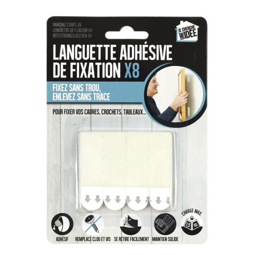 Lot de 8 Languettes de Fixation Adhésif 6cm Blanc