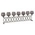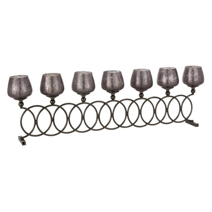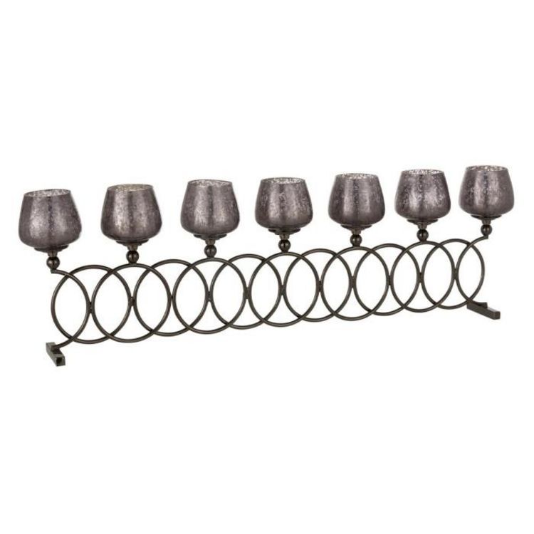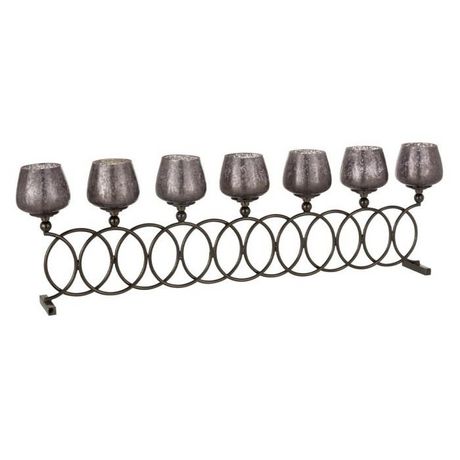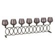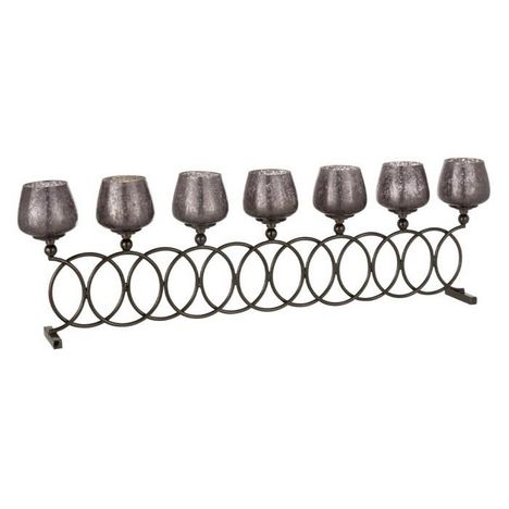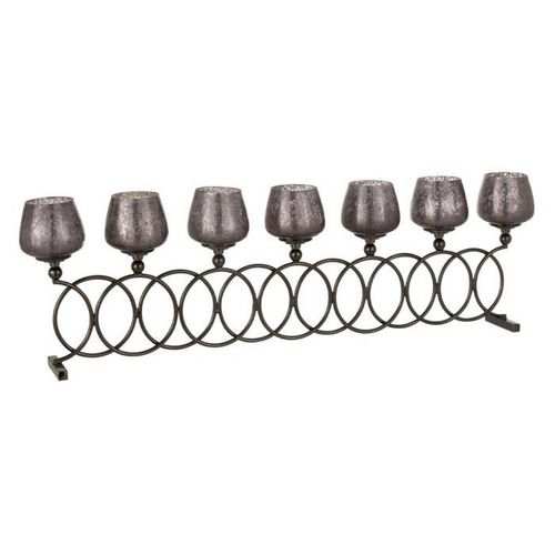 Informations Techniques : Dimensions : L. 72 x l. 9 x H. 22 cm Matières : Aluminium & Verre Spécificités : Pratique & Utile Lot de 8 Photophores Avec Support Design Anneaux Effet Verre Craquelé Poids : 3,03 kg Couleur : Gris