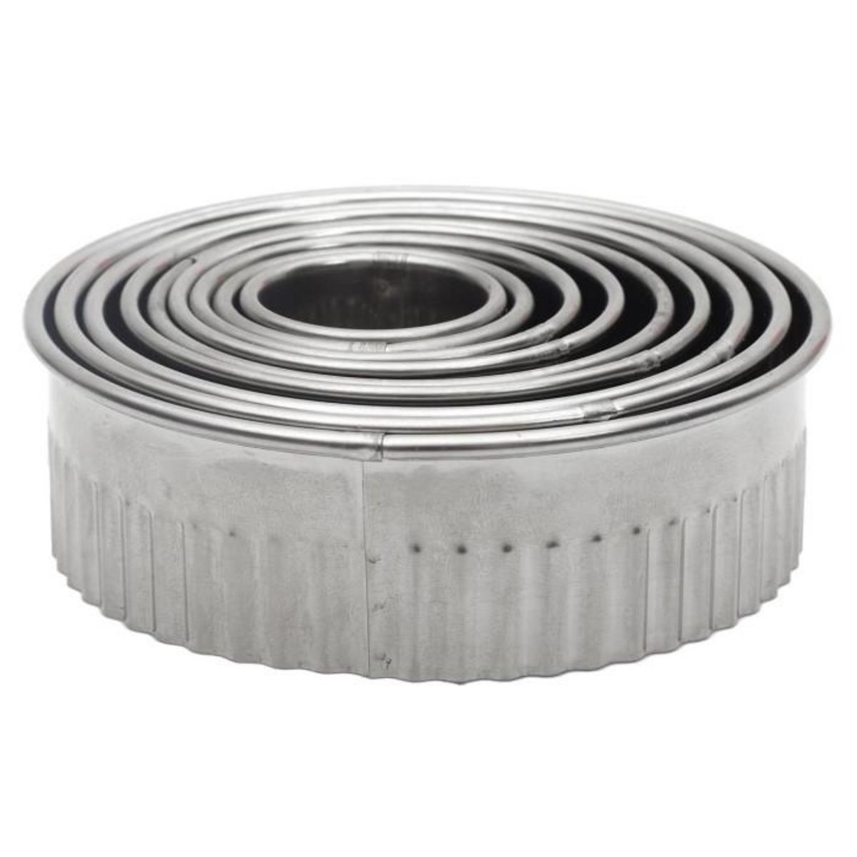 Informations Techniques : Dimensions : D. 9,5 x H. 3 cm Matière : 100% Acier Inoxydable Spécificités : Pratique & Utile Lot de 9 emporte-pièces Design cannelé Forme ronde Poids : 0,12 kg Couleur : Argent
