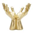 Informations Techniques : Dimensions : L. 25 x l. 15 x H. 24 cm Matière : Polyrésine Spécificités : Déco & Chic Mains déco à poser Représentant un signe peace Poids : 0,98 kg Couleur : Or