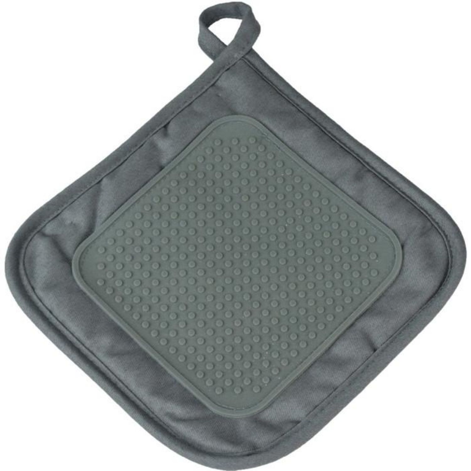 Informations Techniques : Dimensions : L. 19 x l. 19 cm Matières : Coton, Polyester & Silicone Spécificités : Renfort en silicone Isolant de la chaleur Boucle d'accroche Poids : 0,058 kg Couleur : Gris Anthracite