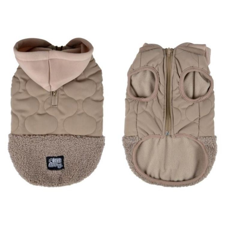Informations Techniques : Dimensions : L. 30 cm Spécificités : Confortable & Chaud Manteau matelassé pour chien Avec capuche Doublure polaire Fermeture à zip Taille S Indice de chaleur : 2 Poids : 0,11 kg Couleur : Beige
