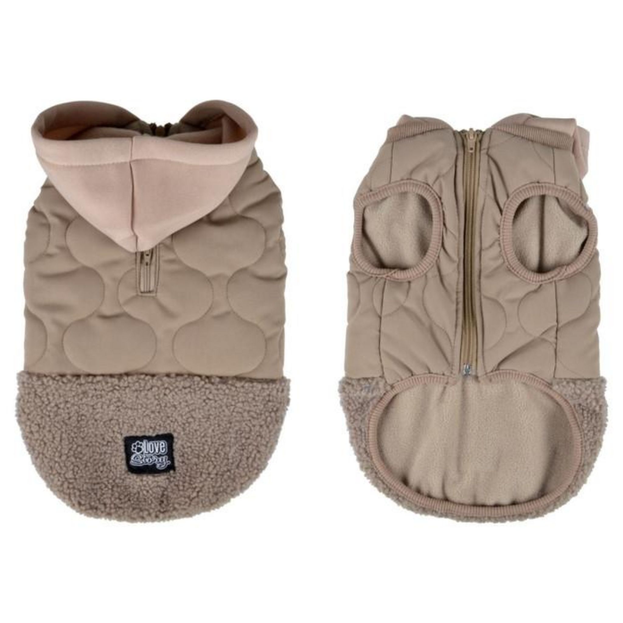 Informations Techniques : Dimensions : L. 40 cm Spécificités : Confortable & Chaud Manteau matelassé pour chien Avec capuche Doublure polaire Fermeture à zip Taille L Indice de chaleur : 2 Poids : 0,15 kg Couleur : Beige