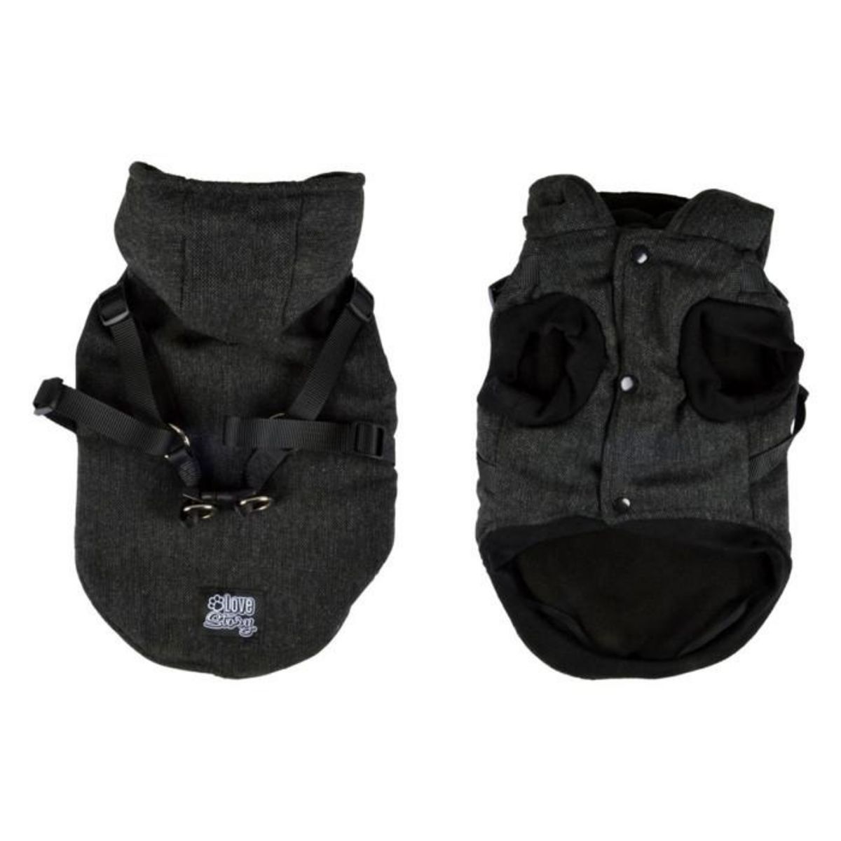 Informations Techniques : Dimensions : L. 35 cm Matière : Tweed Spécificités : Confortable & Chaud Manteau à capuche pour chien Harnais intégré Fermeture à boutons Doublure polaire Taille M Indice de chaleur : 3 Poids : 0,24 kg Couleur : Anthracite