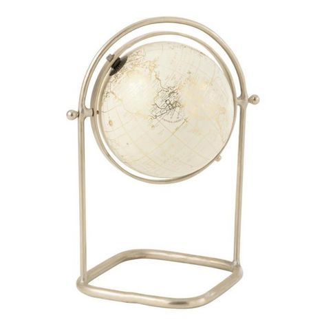 Informations Techniques : Dimensions : L. 31 x l. 20 x H. 40 cm Matières : 70% Métal, 20% Plastique & 10% Papier Spécificités : Design & Chic Mappemonde sur pied Vendue à l'unité Poids : 2,4 kg Couleur : Argent, Blanc & Or