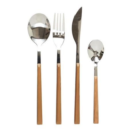 Ménagère 16 Pièces Effet Bois 25cm Marron