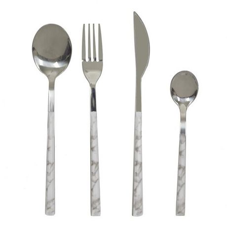 Ménagère 16 Pièces Effet Marbre 25cm Blanc