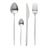Informations Techniques : Dimensions : L. 27 x l. 16 x H. 6 cm Matière : 100% Acier Inoxydable Spécificités : Élégante & Raffinée Ménagère 24 pièces Design unicolore Finition mate Contient : 6 x fourchettes 6 x couteaux 6 x cuillères à soupe 6 x cuillères à café Compatible : Lave-vaisselle Poids : 0