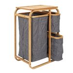 Informations Techniques : Dimensions : L. 33 x l. 49 x H. 69,5 cm Matières : Polyester & Bambou Spécificités : Utile & Pratique Meuble à linge Avec 3 paniers amovibles Forme rectangulaire Poids : 3,65 kg Couleur : Naturel & Gris