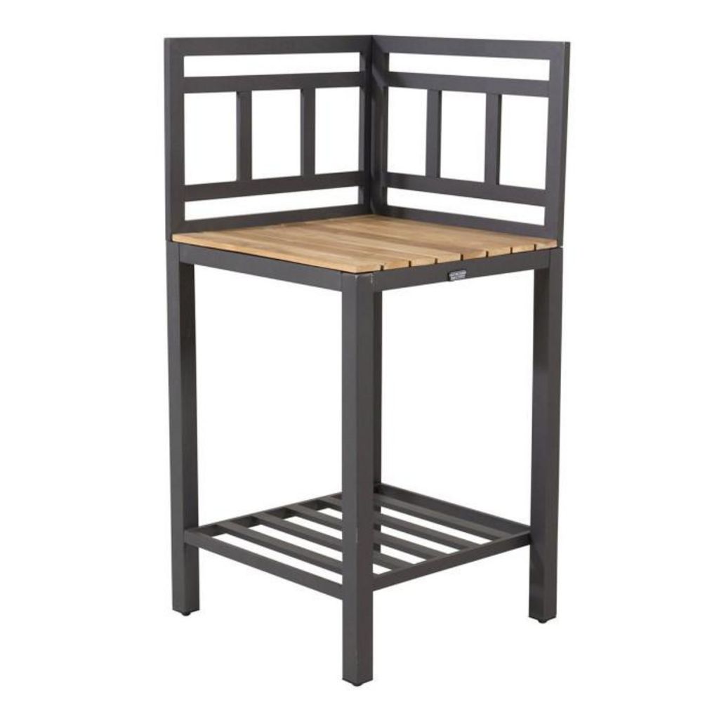 Informations Techniques : Dimensions : L. 60 x l. 60 x H. 127 cm Plateau : H. 2 cm Matières : Bois (Teck) & Aluminium Spécificités : Pratique & Élégant Module d'angle carré Pour cuisine d'extérieur Avec étagère Plateau en bois Poids : 25 kg Couleur : Noir & Naturel