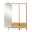 Informations Techniques : Dimensions : L. 149 x P. 54 x H. 180 cm Intérieur du Tiroir : L. 84 x P. 38 x H. 14 cm Matières : Panneaux de particules - Placage Chêne Piètement : Chêne Massif Les + du produit : Style Scandinave Avec Miroir, Tiroir & Penderie Avec Crochet Support Mural Inclus Matériaux