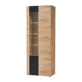 Informations Techniques : Dimensions : L. 70 x l. 40 x H. 192 cm Matières : MDF, Panneau stratifié, Feuille de PVC & Verre Spécificités : Pratique & Utile Meuble de rangement haut Avec étagères dont certaines en verre 2 portes dont 1 partiellement vitrée Design rainuré noir Finition mate Éclairage L