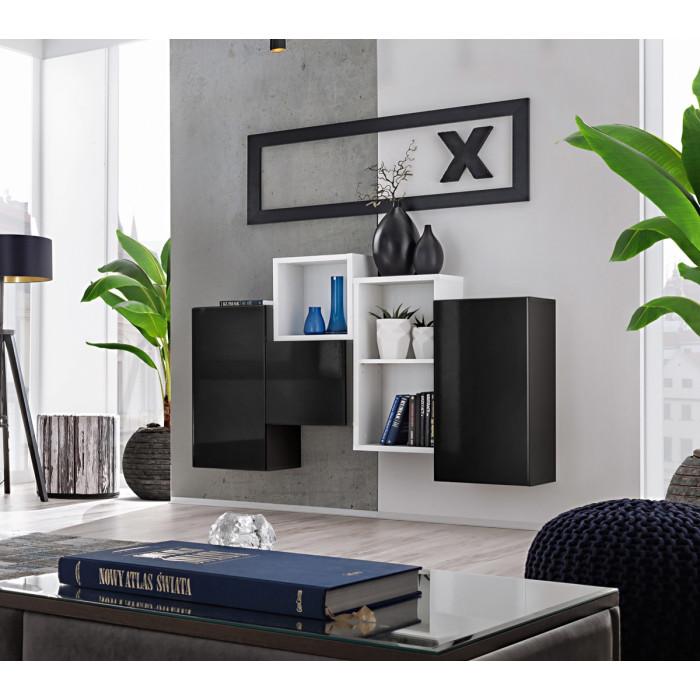 Meuble de Rangement Mural Blox III 140cm Noir & Blanc
