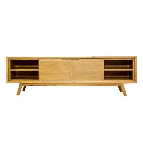 Meuble TV 2 Portes 4 Niches Fiftees 180cm Naturel