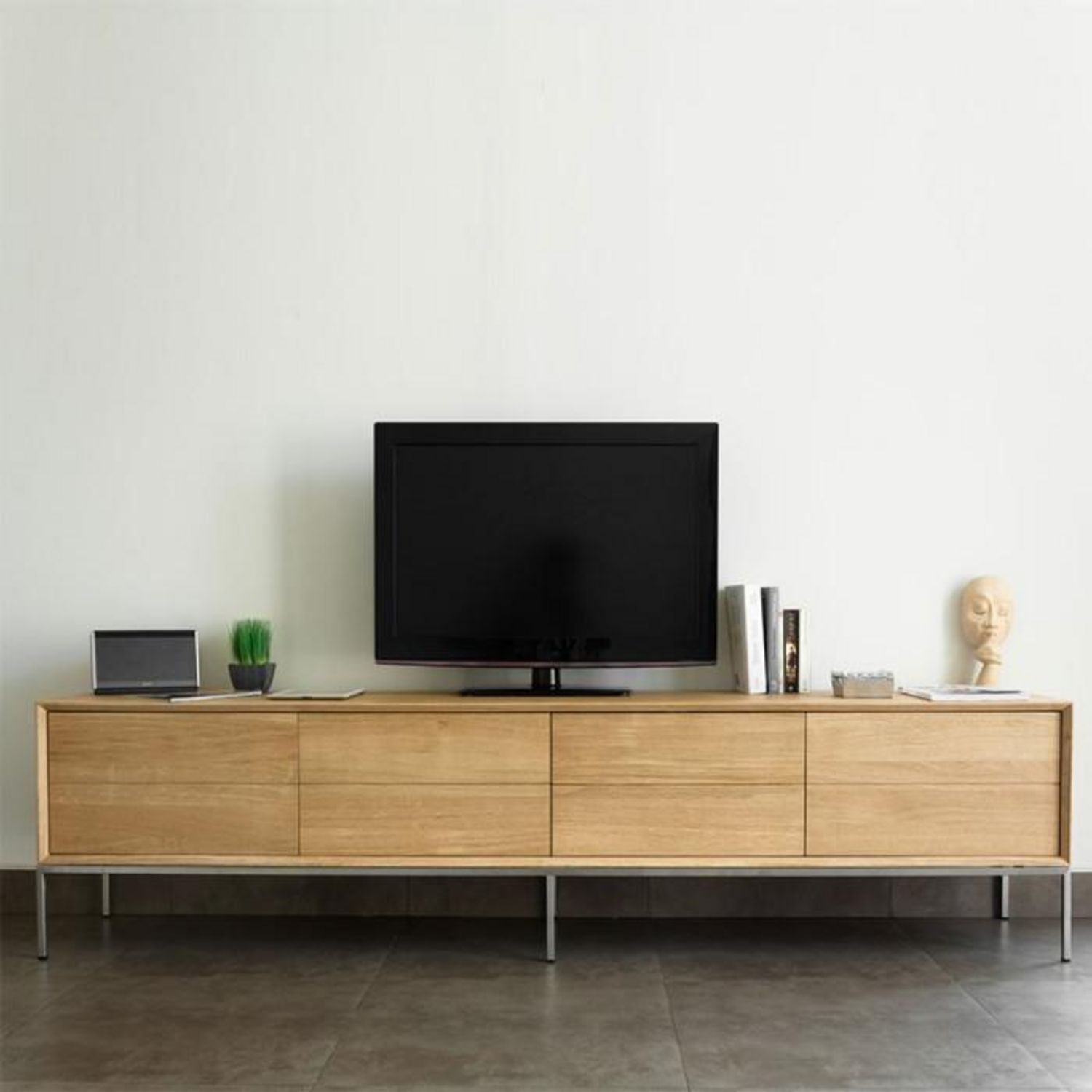 Meuble TV 2 Tiroirs 2 Portes Kubico 225cm Chêne Massif