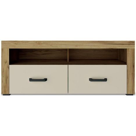 Meuble TV 2 Tiroirs Varoy 120cm Chêne Clair