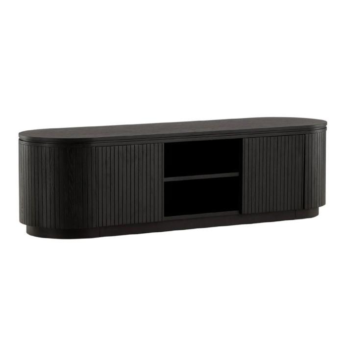 Meuble TV Design Nervuré Fjallbacka 160cm Noir