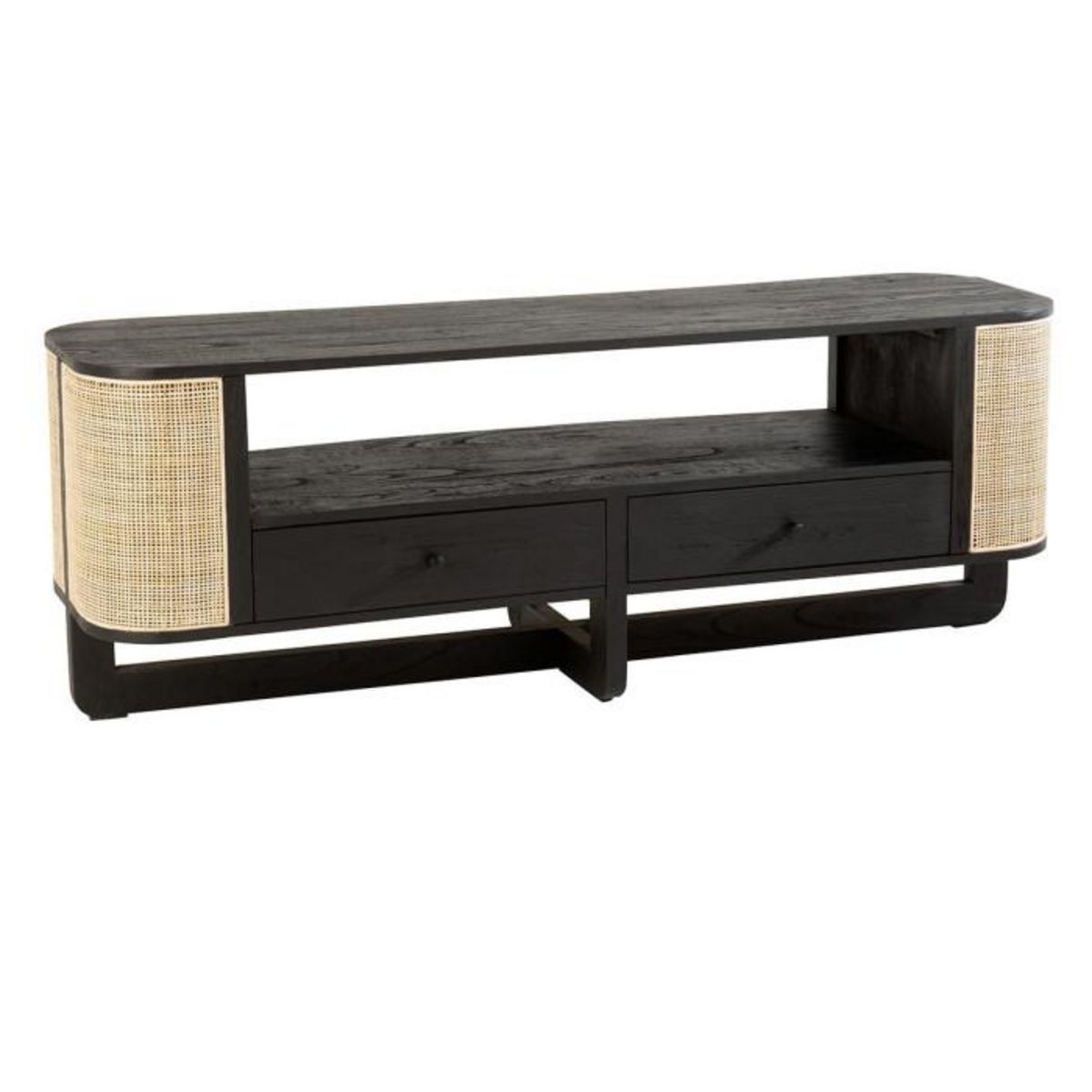 Meuble TV en Rotin Molly 140cm Noir & Beige