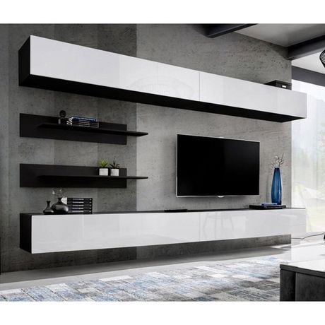 Meuble TV Mural Design Fly VI 320cm Blanc & Noir