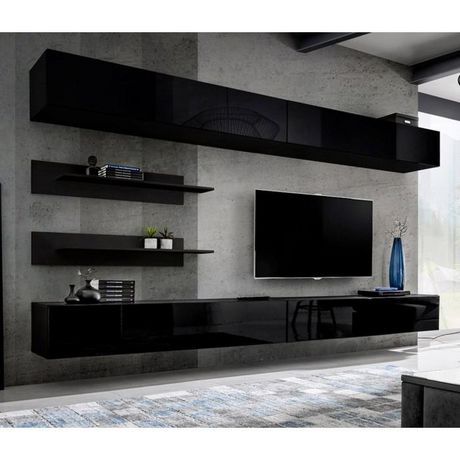 Informations Techniques : Dimensions : L. 320 x P. 40 x H. 180 cm (selon positionnement souhaité) Grand Bloc Mural : L. 160 x P. 29 x H. 30 cm Meuble TV : L. 160 x P. 40 x H. 30 cm Etagère Murale : L. 100-120 x P. 20 x H. 20 cm Matières : Structure : Panneaux de particules stratifiés d'une épaisseur