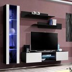 Meuble TV Mural Design Fly XIX 210cm Blanc & Noir