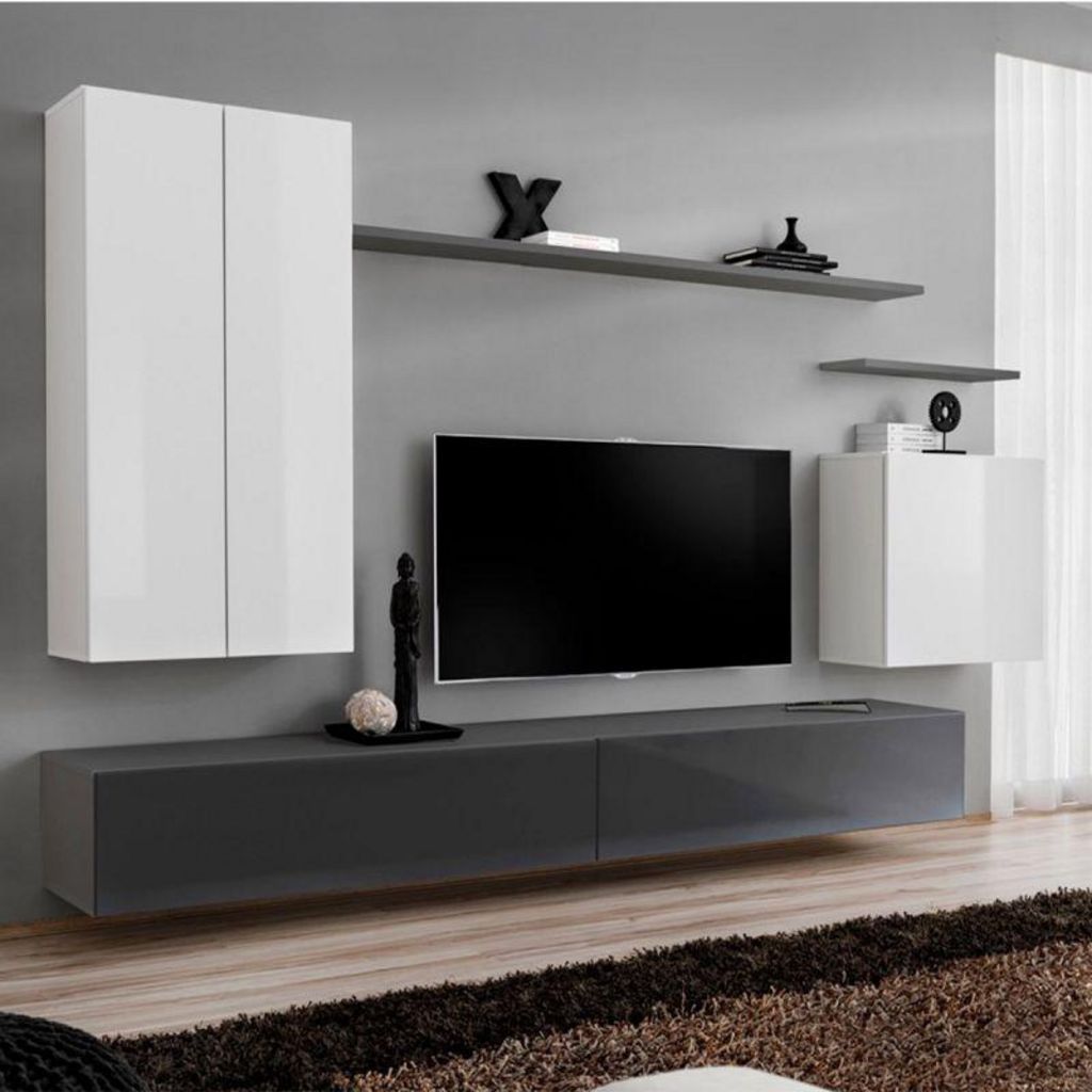 Meuble TV Mural Design Switch II 270cm Blanc & Gris