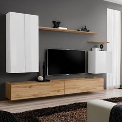 Meuble TV Mural Design Switch II 270cm Blanc & Naturel