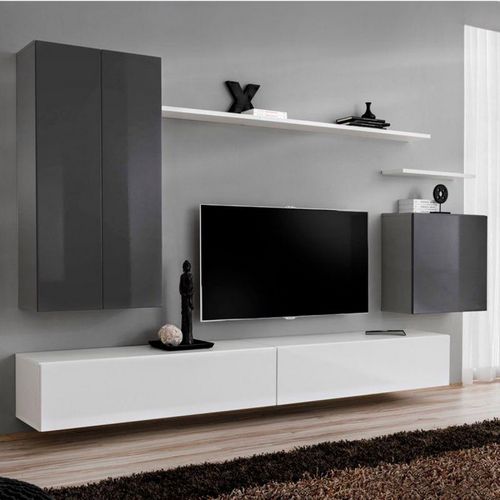 Meuble TV Mural Design Switch II 270cm Gris & Blanc