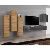 Informations Techniques : Dimensions : Banc TV : L. 180 x l. 40 x H. 30 cm Bloc mural vertical : L. 30 x l. 30 x H. 120 cm Bloc mural carré : L. 60 x l. 30 x H. 60 cm Dimension totale : L. 330 x l. 40 x H. 160 cm Matières : Structure : Panneaux de particules stratifiés Façades : Panneaux de fibres à